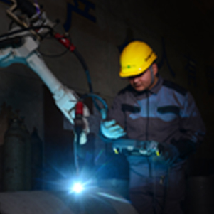 2台松下焊接机器人,高脉冲焊接,无飞溅,自动化程度高,焊缝美观